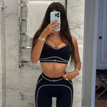 The Airbrush Heart Throb bra and high-waist leggings feature contouring seams, a supportive fit, and a sleek black-and-white contrast. Perfect for training or everyday streetwear.