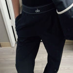 High-rise waistband with subtle Alo logo, wide-leg cut for a sleek and versatile fit.