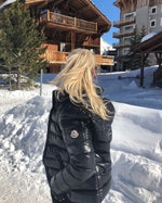 A timeless winter essential. The Moncler Maya embodies alpine elegance and technical excellence. Crafted from glossy black nylon, it combines warmth, lightness, and a sleek silhouette. Filled with premium down for maximum insulation without sacrificing style.